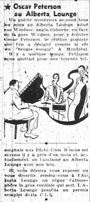 Band au Café Saint-Michel, et croisant à l’Alberta Lounge Oscar Peterson, qui